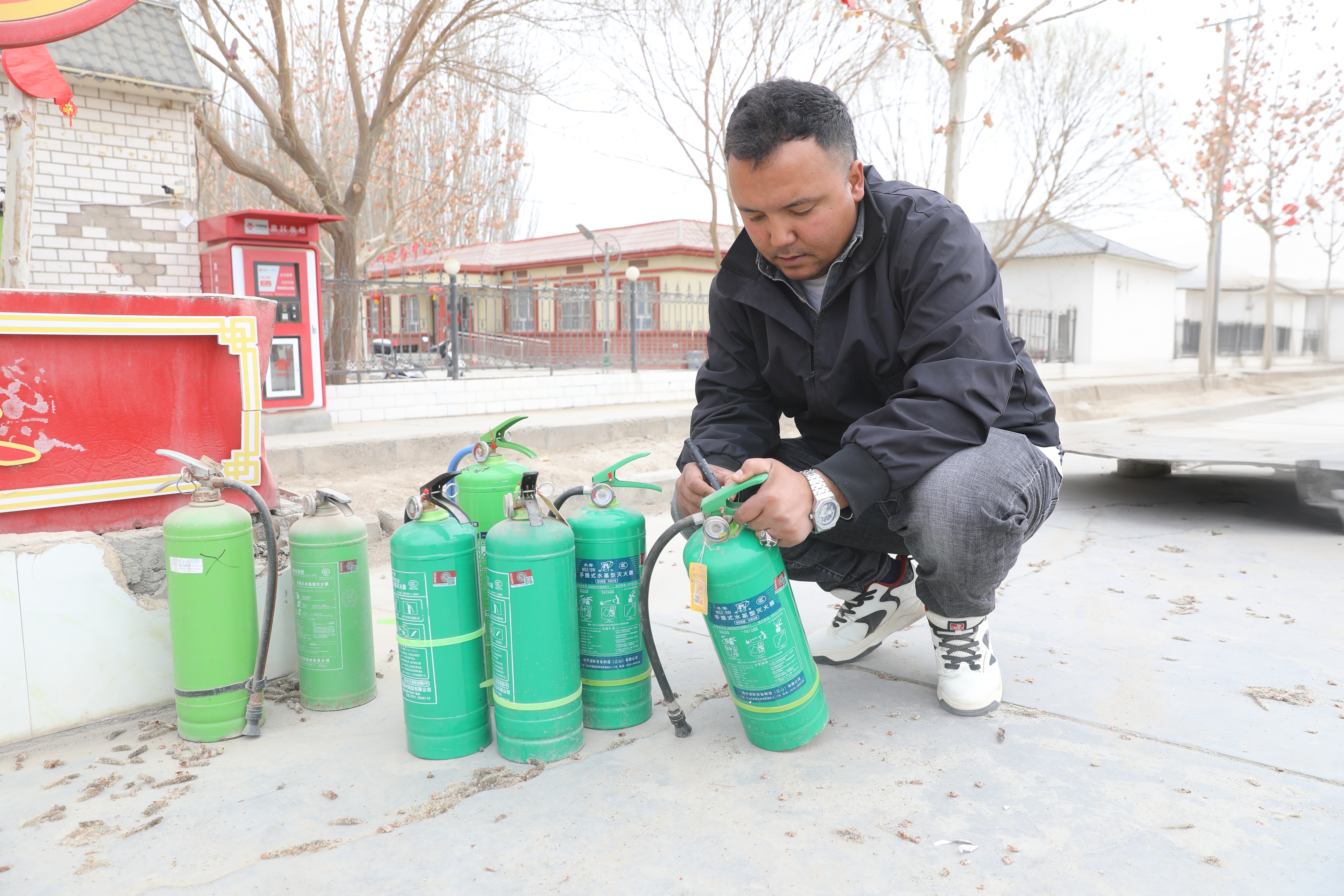 地区第一人民医院驻新和县塔木托格拉克乡兰干村工作队邀请县瑞祥消防公司安全员,逐户排查村民家中灭火器,重点查验压力值、完好度及有效期限,通过“排查+宣教”相结合的方式,切实筑牢乡村消防安全“防火墙”。