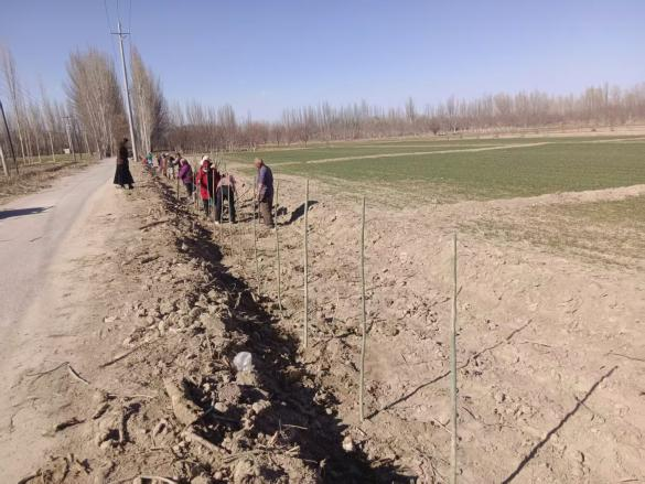 春回大地,万物复苏。近日,乌什县阿克托海镇阿克托海村新时代文明实践站抢抓春季植树黄金时节,组织村“两委”干部、驻村工作队、党员及村民30人开展翻地植树活动,以实际行动为美丽乡村增添新绿。