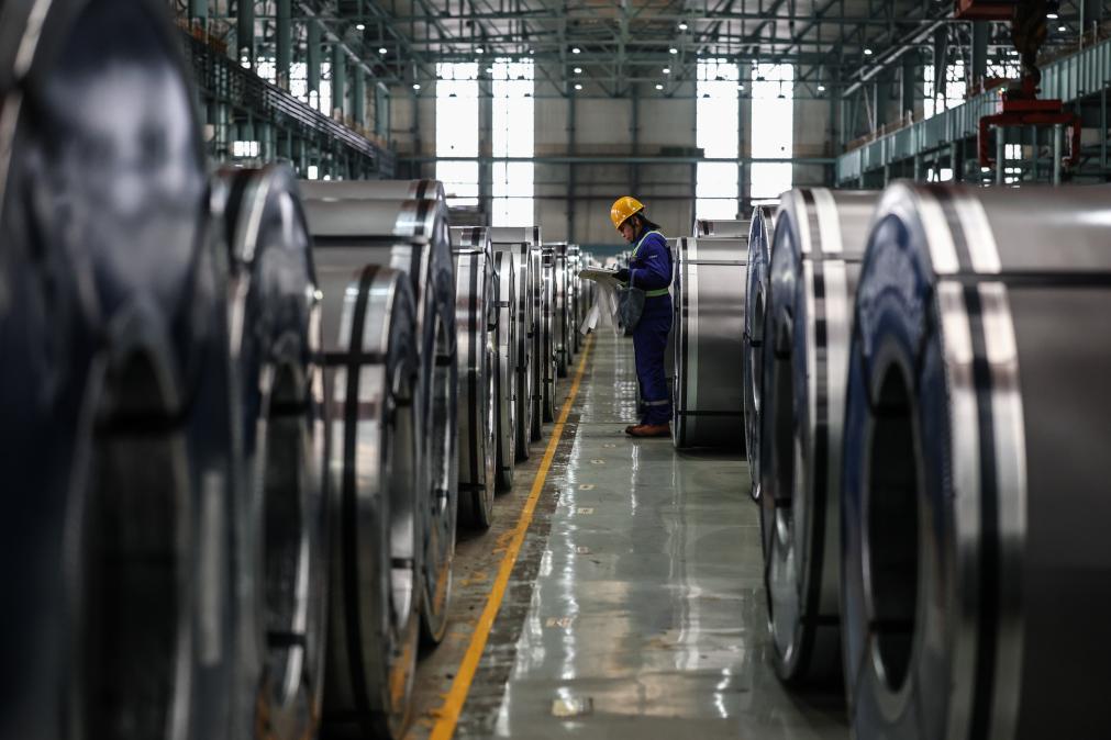 2025年12月6日,工作人员在鞍钢集团本钢板材冷轧总厂第三冷轧厂成品库核对清点产品。新华社记者 潘昱龙 摄
