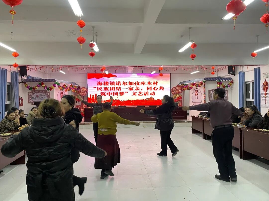 1月26日,沙雅县海楼镇诺尔如孜库木村“民族团结一家亲 同心共筑中国梦”文艺活动现场热闹非凡,各族群众通过歌舞、朗诵、游戏等形式,共同抒发爱国情怀,展现团结风貌。