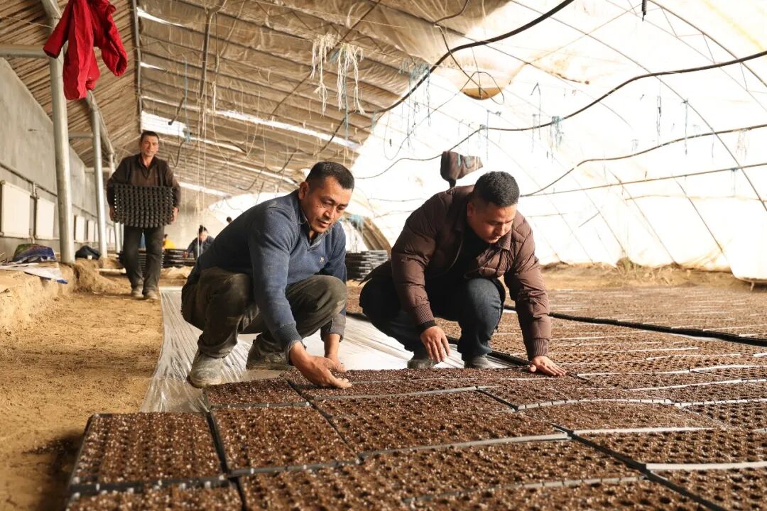 2月4日,走进位于乌什县阿克托海镇吉格代力克村的一温室大棚育苗基地,大棚温暖如春,只见种植户们正分工协作、加紧育苗,播种、覆土、摆盘,一道道工序细致规范。