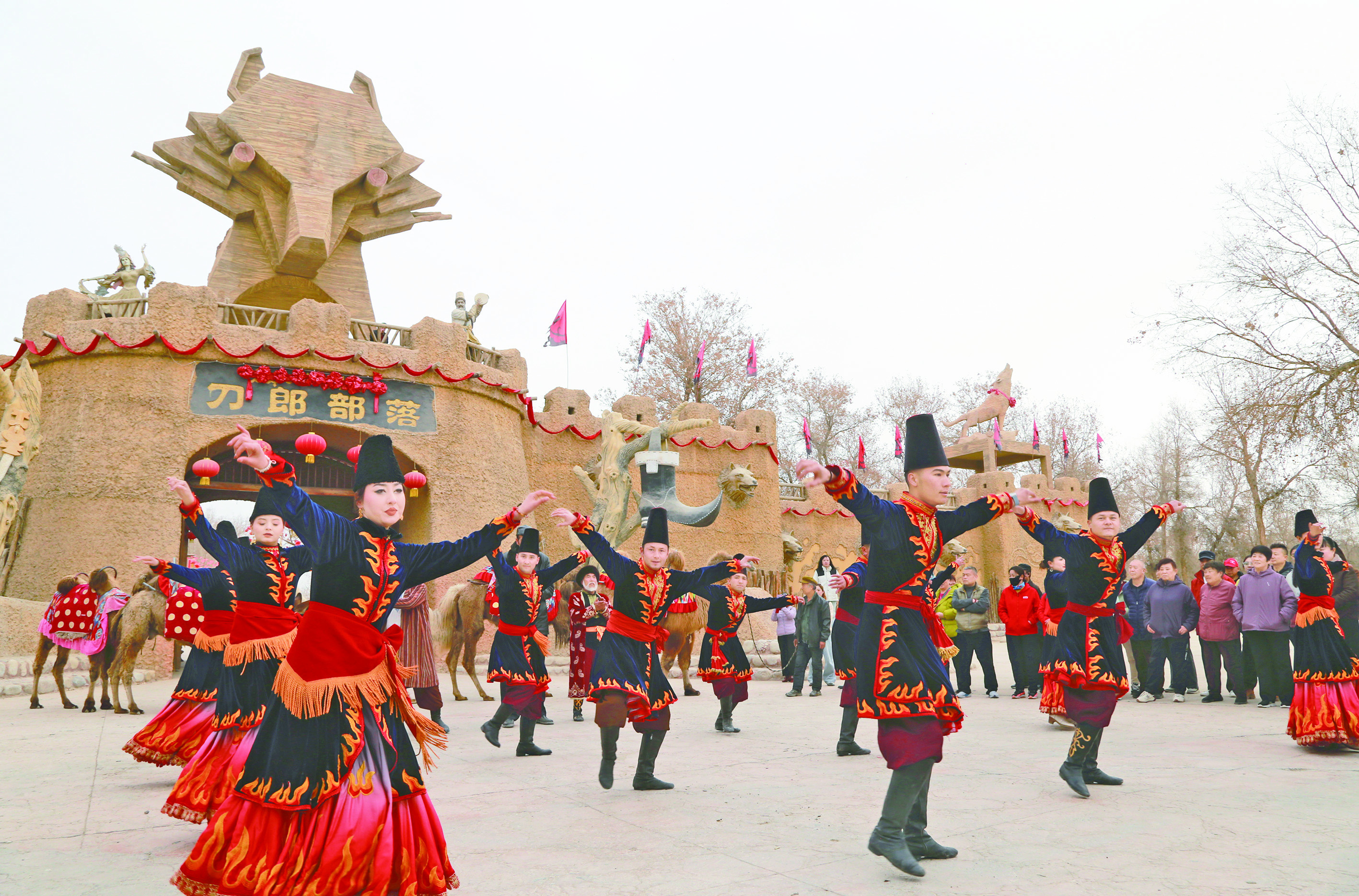 3月21日,演员在阿克苏地区阿瓦提县刀郎部落景区表演刀郎麦西热甫。肉孜节当天,该景区推出系列群众性文化活动,吸引众多游客前来打卡。