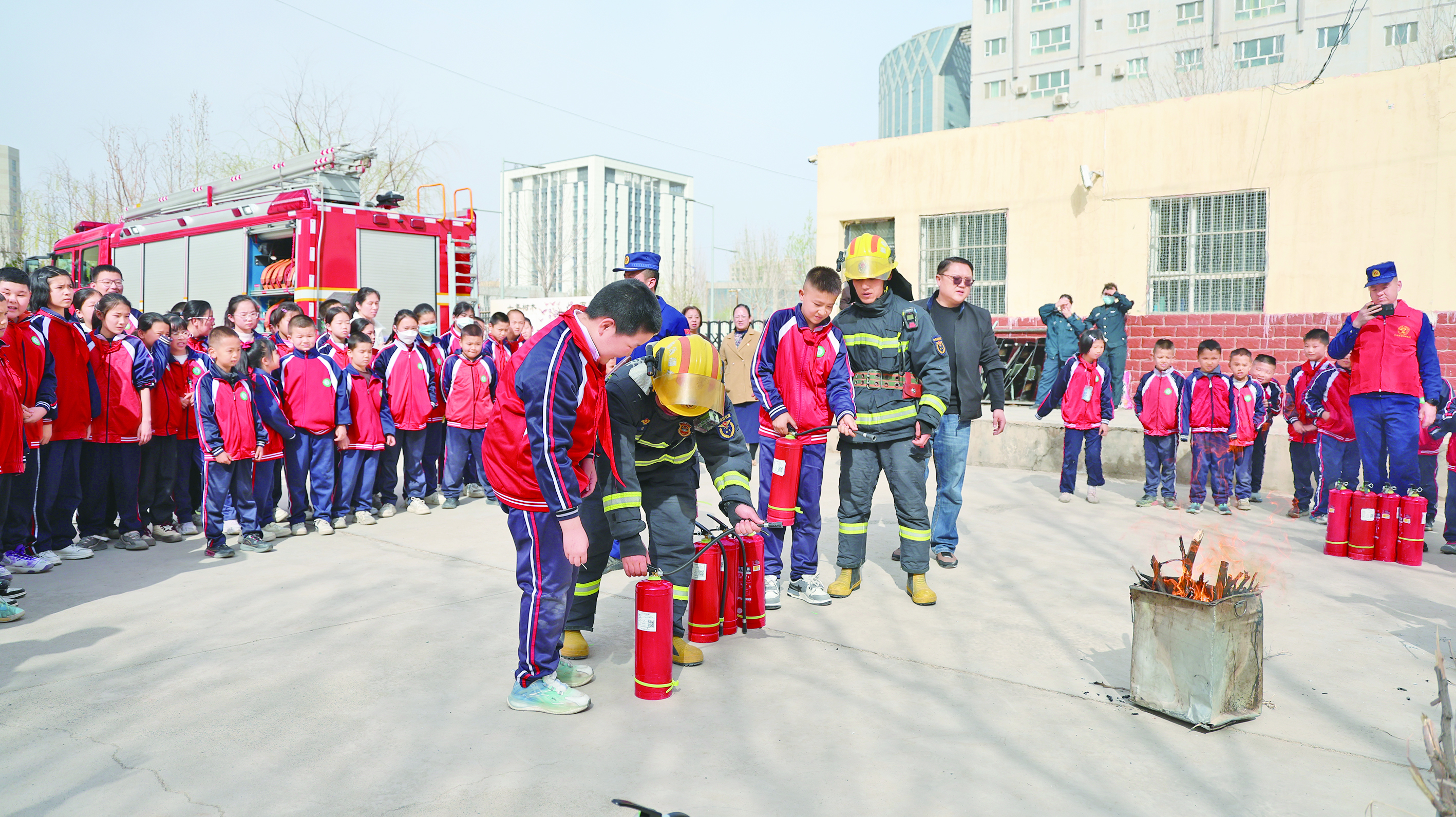 3月26日,库车市消防救援大队联合市教育局、林基路志愿服务队走进市第十三小学,开展消防安全宣传活动。  通讯员 王雪妮 摄