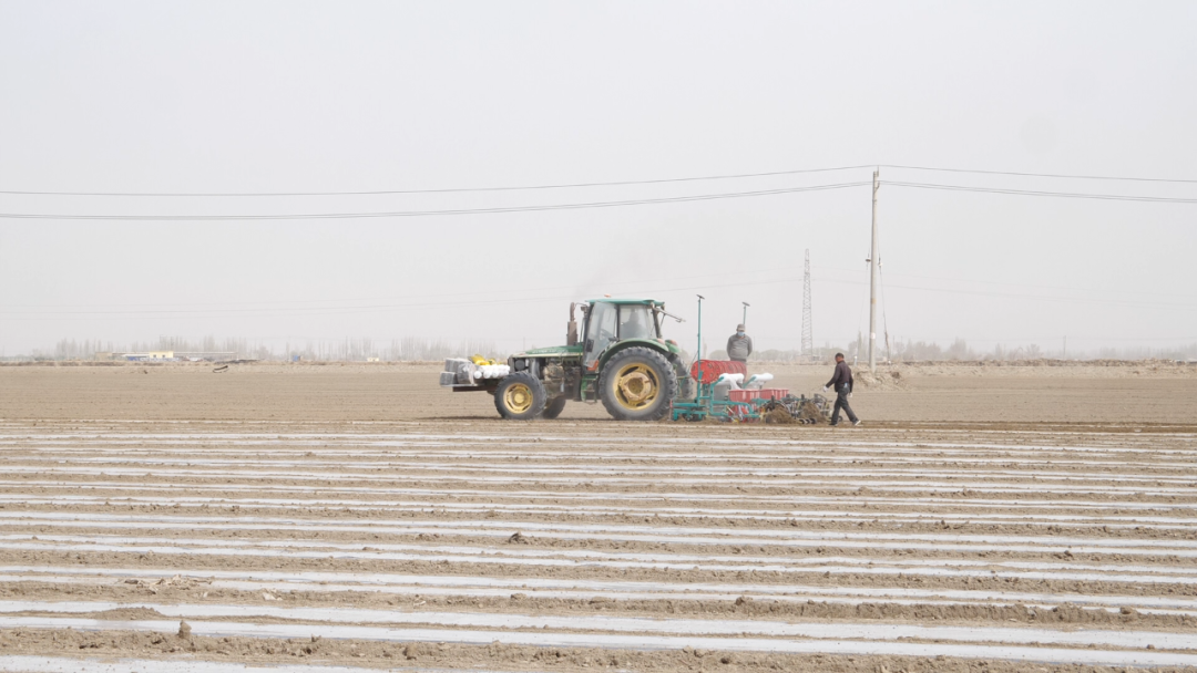 4月1日,走进沙雅县海楼镇博孜墩村的棉田,播种机在田间匀速作业,铺设地膜、滴灌带、精量播种一气呵成。种植户们抢抓农时,加快播种进度。