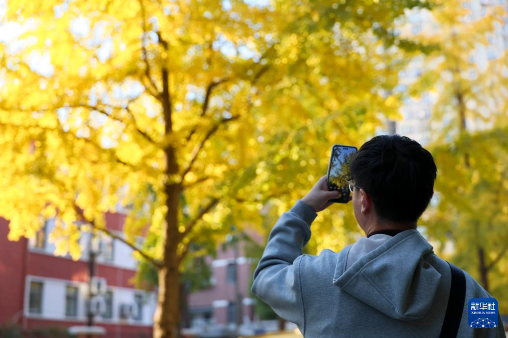 11月30日,市民在上海市黄浦区局门路拍摄银杏。新华社记者 王翔 摄