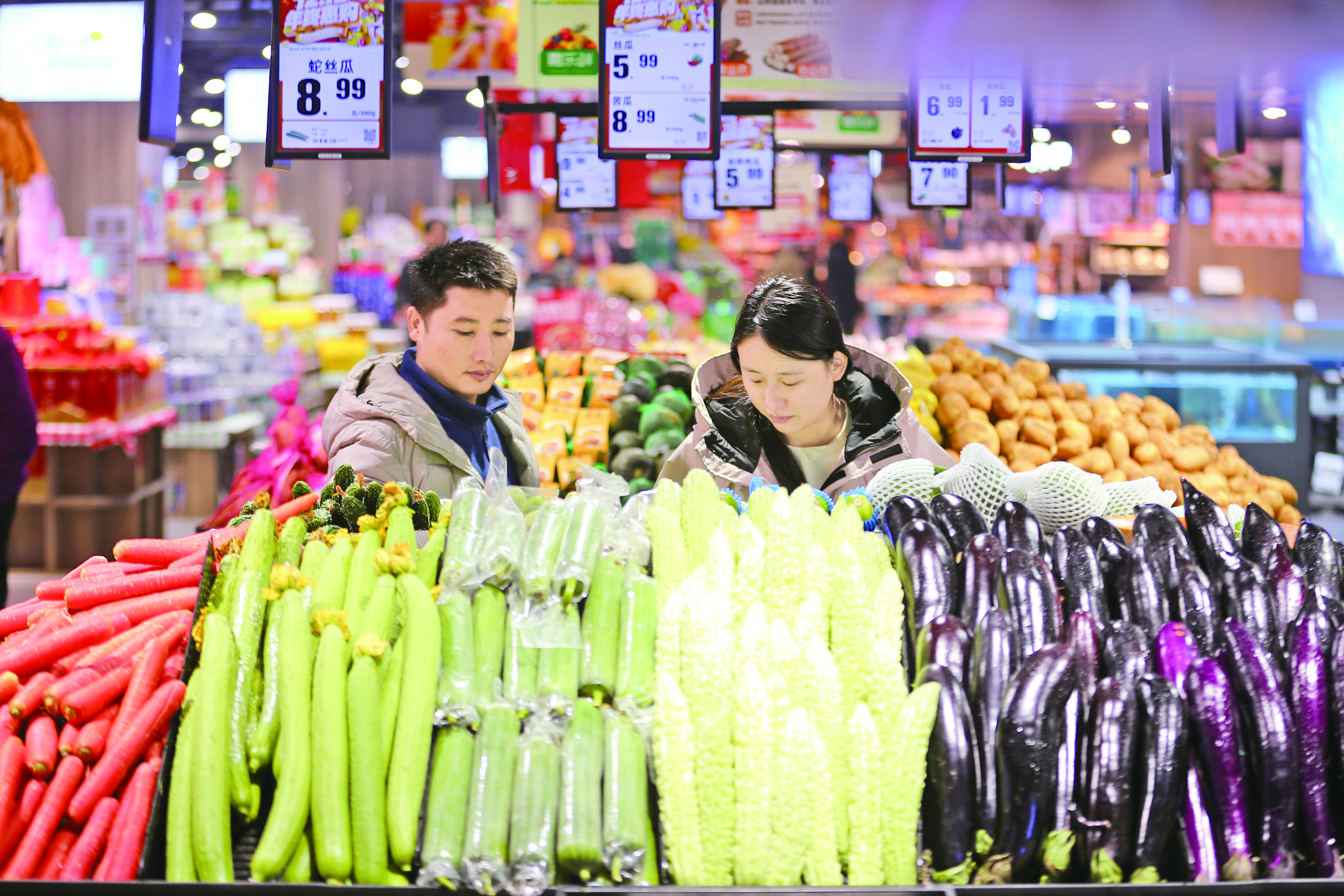 12月10日,消费者在四川省乐山市一家超市购买蔬菜。