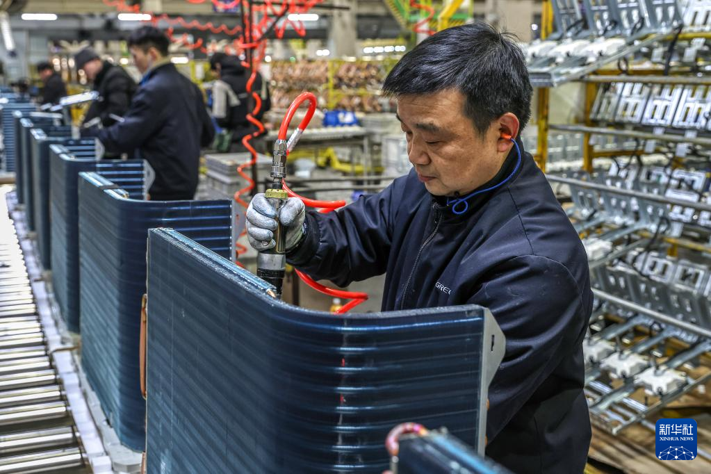 1月29日,在南京江宁高新技术产业开发区,工人在格力电器(南京)有限公司生产线上作业。新华社发(辛一摄)