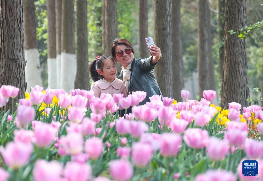 4月1日,小朋友和家长在位于江苏省句容市的江苏农博园享受春假。新华社发(钟学满摄)