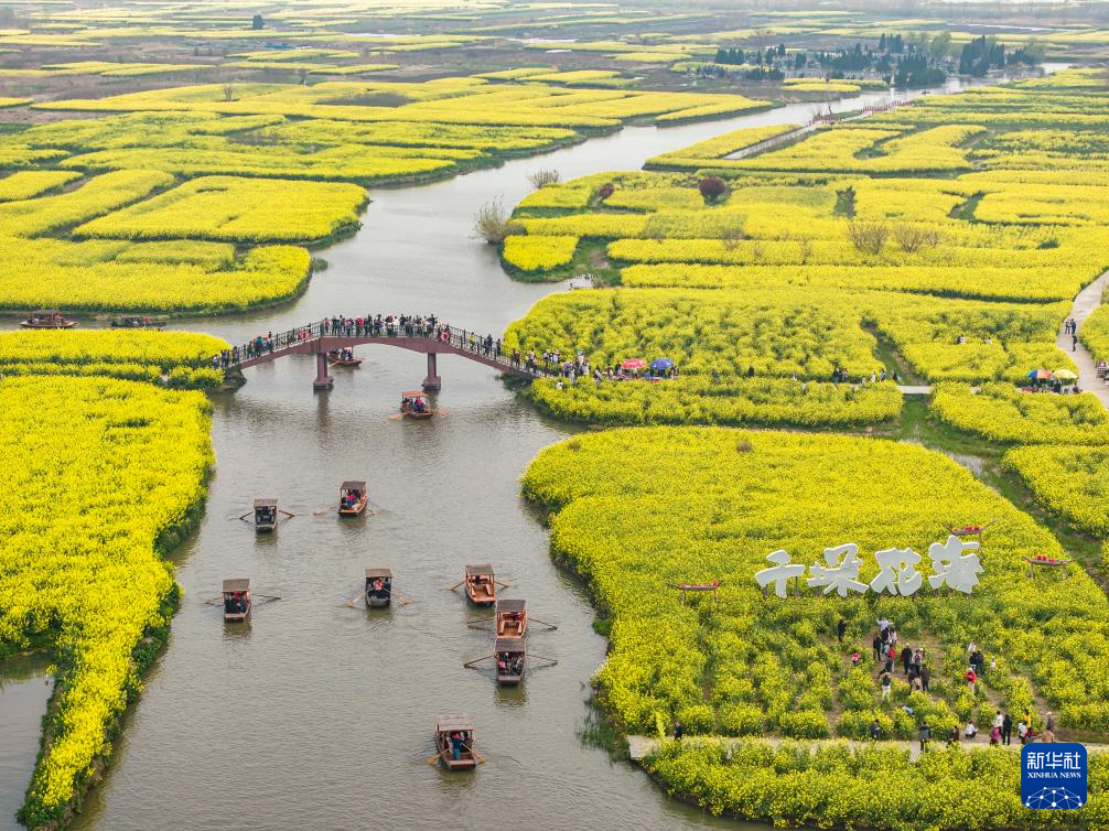 4月4日,游客在江苏兴化千垛景区踏青赏花(无人机照片)。新华社发(顾继红摄)