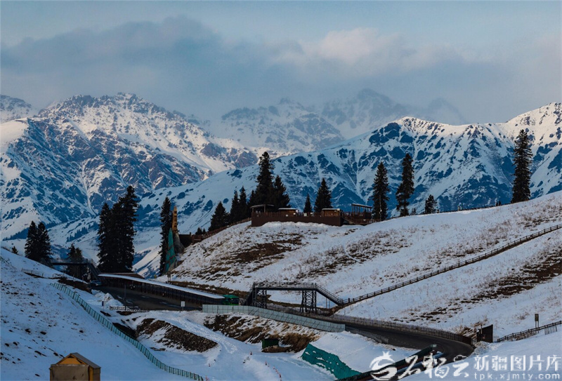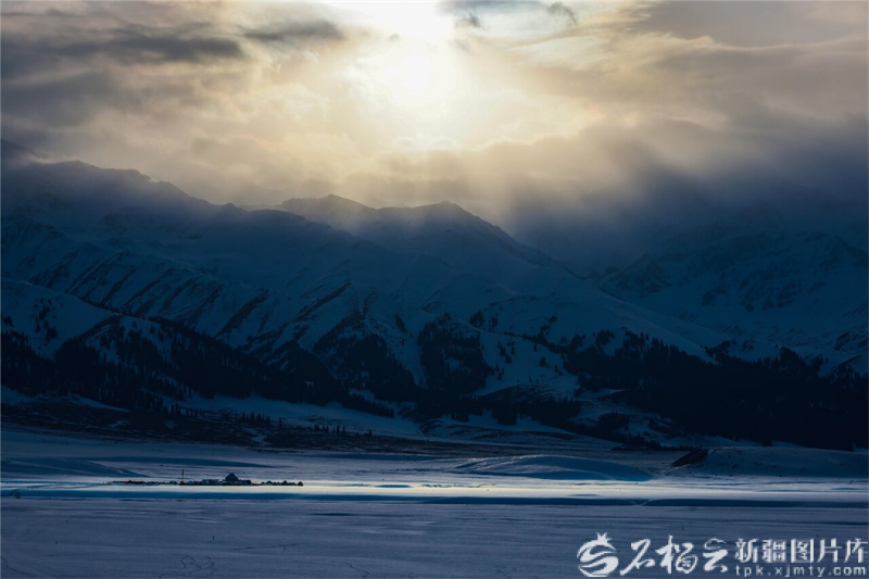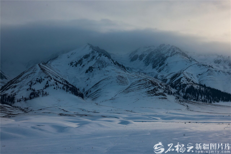 1月4日,那拉提空中草原银装素裹。太阳慢慢西沉,那拉提的雪岭渐渐披上墨色轻纱。连绵的雪山在暮色里勾勒出硬朗的轮廓,养蜂女雕塑的裙摆与皑皑白雪相映成趣,云杉林在暮色中勾勒出深墨色的轮廓。通讯员张文庭摄