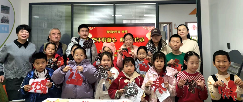 在孩子们动手创作的过程中,王文忠还教大家如何剪出带有吉祥寓意的纹样。张文莉耐心指导孩子们动手创作,随着纸屑纷纷落下,一张张红纸变成了活灵活现的剪纸作品,也成了连接老少两代人的文化纽带。
