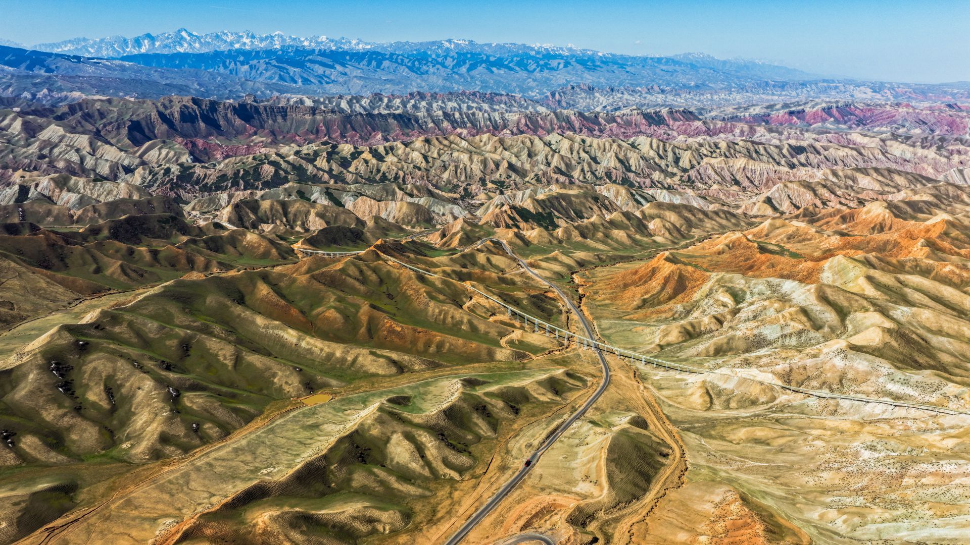 4月的新疆S101公路,是春天铺展在大地上的绝美画廊。公路蜿蜒穿行于丹霞群山之间,赤红岩壁与初绽新绿相映成趣;远处雪峰皑皑,近处碧水澄澈。光影流转间,戈壁、草甸与峡谷次第铺展,尽显山河壮阔。每一帧都是春日盛景,定格下新疆独有的磅礴与温柔。