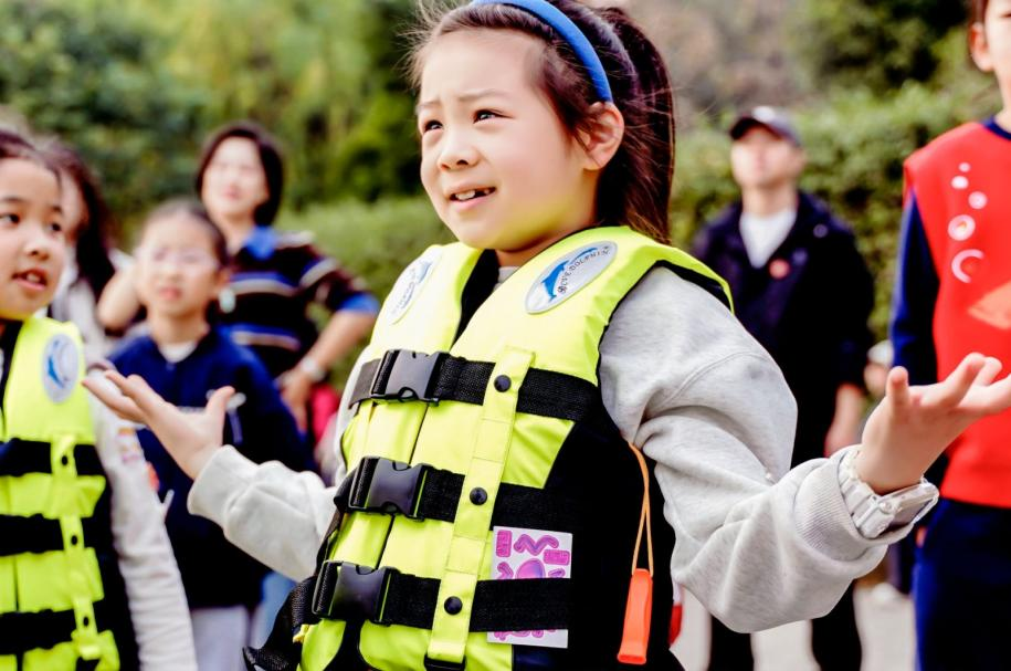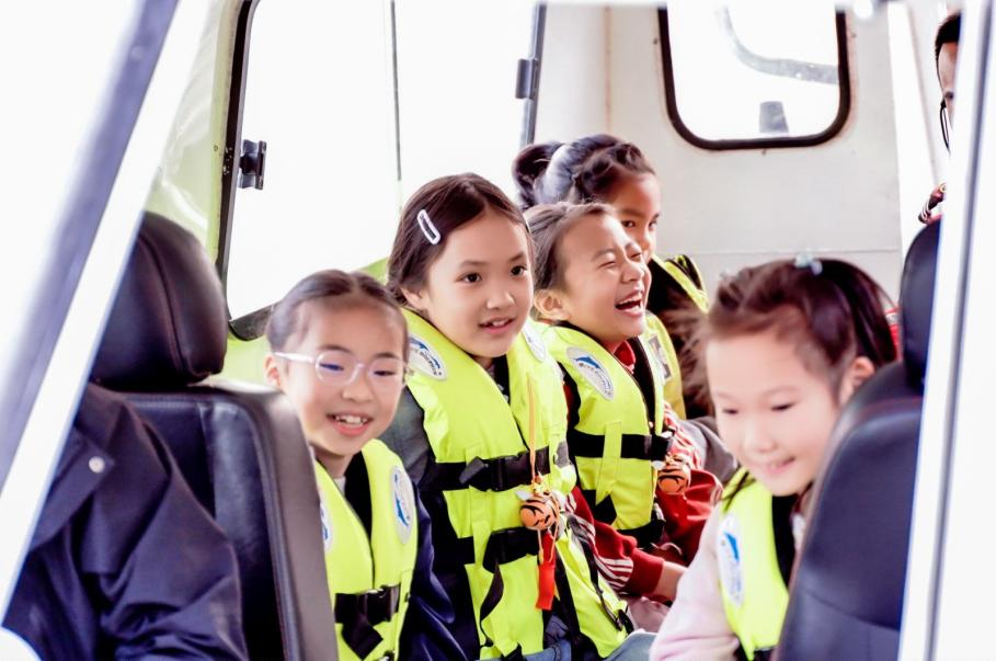 “大家一定要记住,救生衣不是装饰品,关键时刻能保命!”湘湖救援大队副大队长李波一边细心讲解,一边手把手演示着救生衣的正确穿法。孩子们立刻穿上荧光救生衣,排着整齐的队伍有序登上巡逻艇。巡逻艇破浪前行,凉风扑面,大家忍不住惊呼:“原来这就是争分夺秒!”“这么快的速度,救援人员就是勇士啊!”