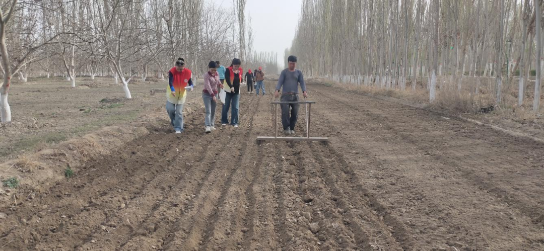 在种植现场,只见人大代表身穿红色志愿服务马甲,手持种子袋,眼神专注地将种子均匀播撒,身旁的村民则熟练地推着耱,动作沉稳有力,大家默契配合、干劲十足,现场一片繁忙景象。最终在人大代表和村民的共同努力下,村里大片土地都种上了红花。