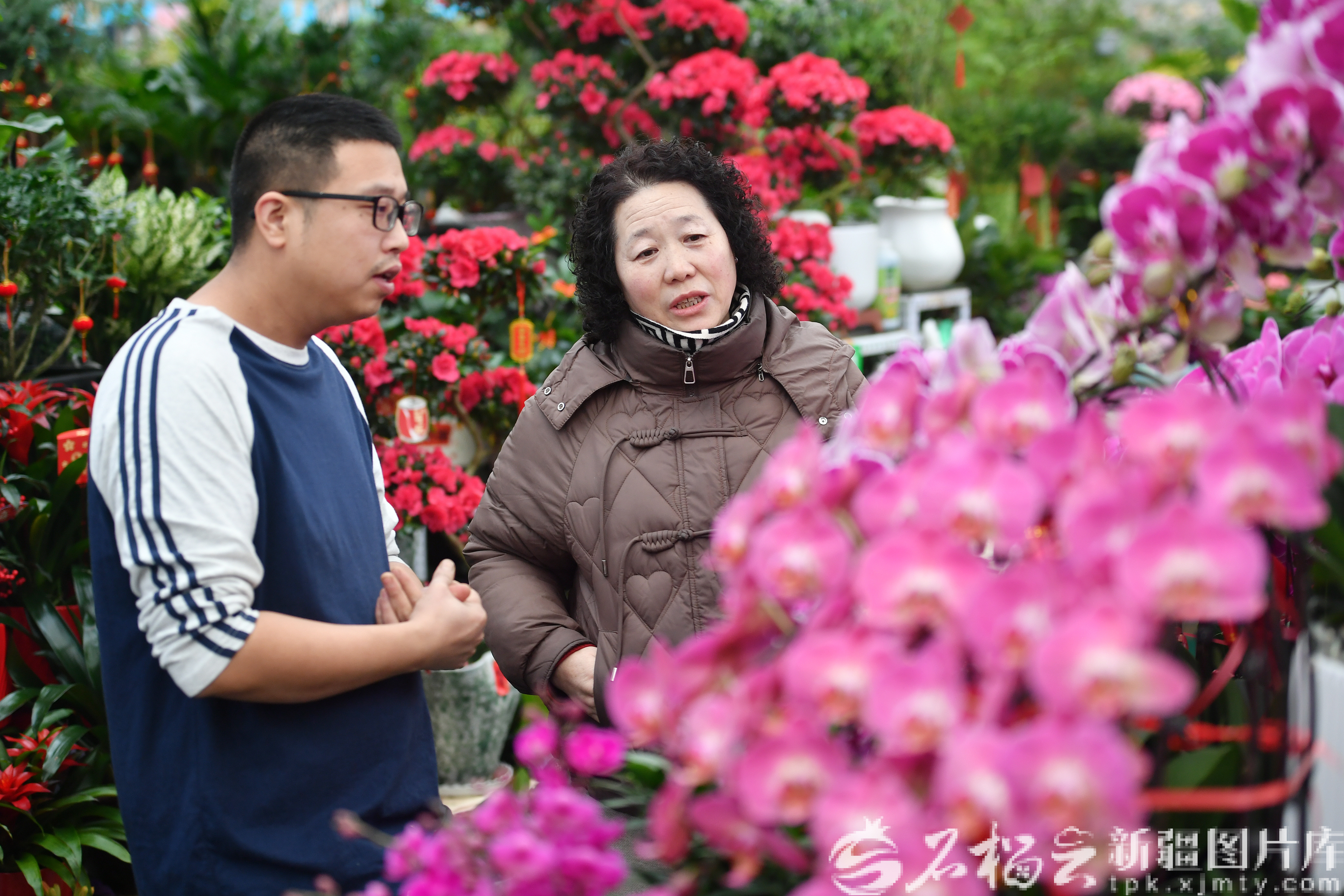 2月6日清晨,市民在乌鲁木齐市新联农副产品综合市场选购鲜花。