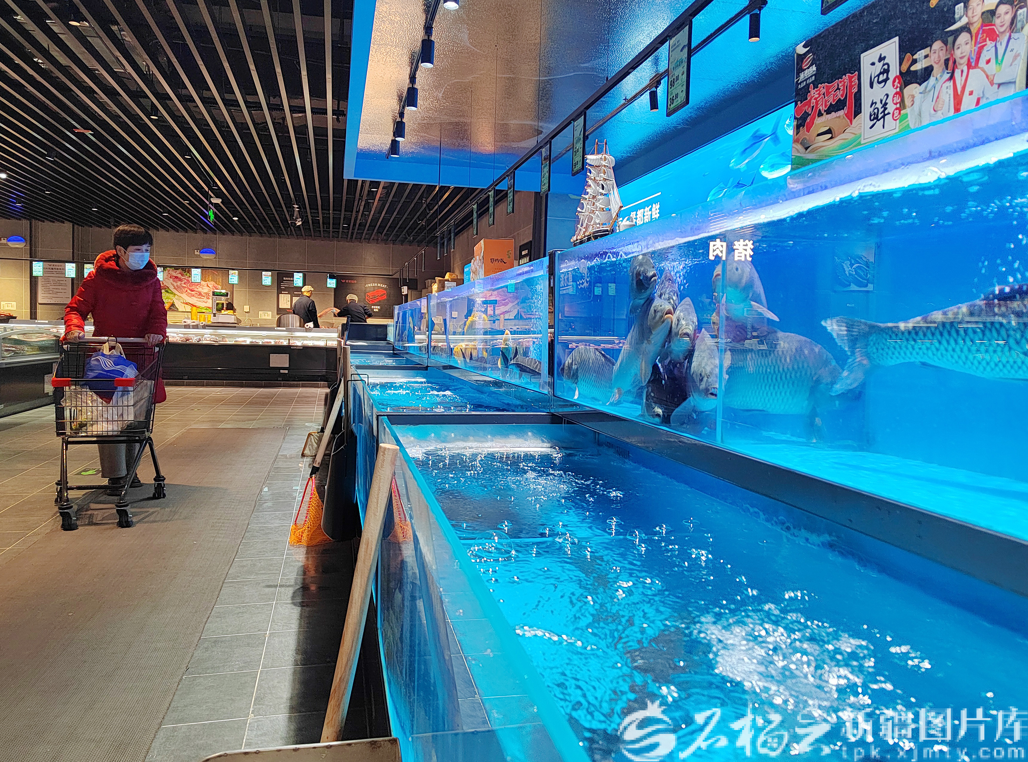 2月6日,市民在乌鲁木齐爱家超市长春路万达店选购水产品。