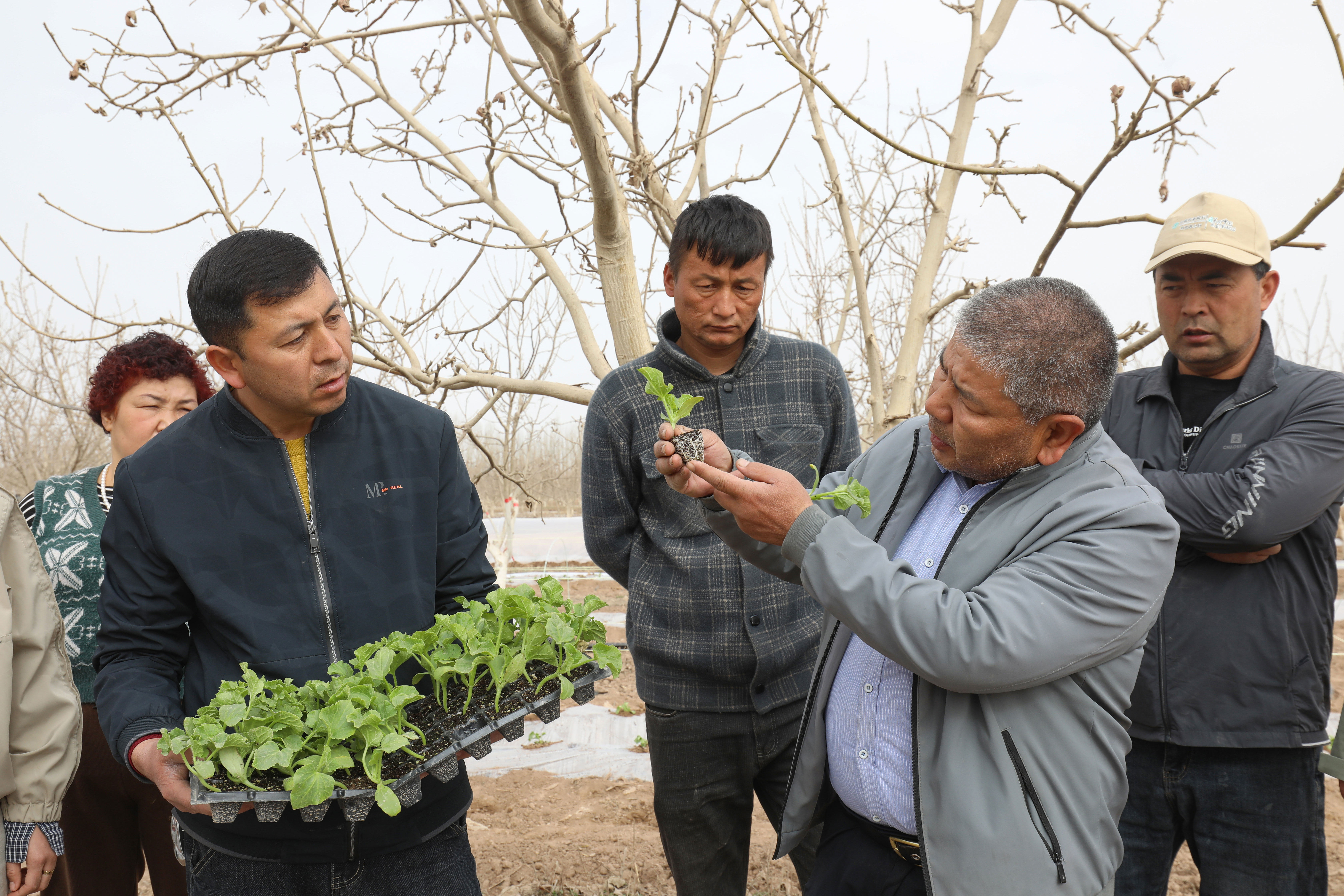 农技服务“零距离”,库车市农业农村局技术人员现场指导村民科学种植瓜苗。卜登鹏 摄