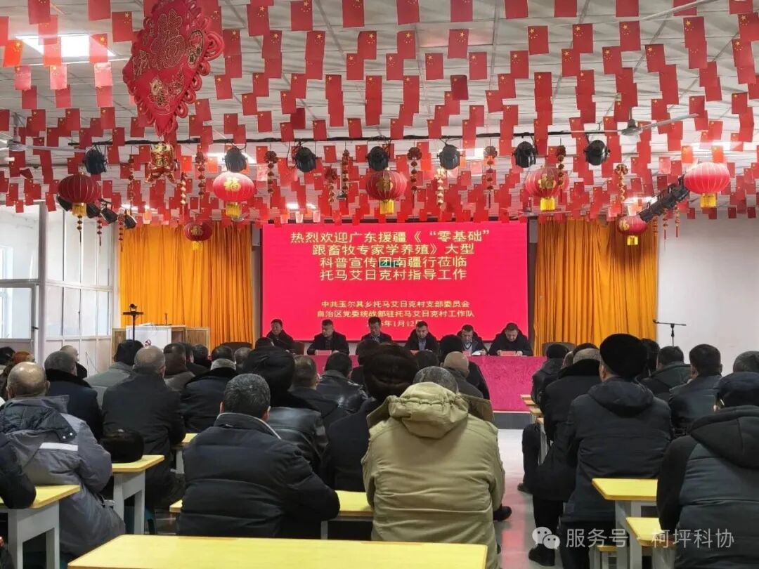 近日,由广东省援疆工作指挥部“科普援疆”专家团队组成的科普宣讲团,深入新疆阿克苏地区柯坪县玉尔其乡托玛艾日克村开展畜牧养殖专题培训活动。此次活动是广东援疆“科技赋能产业振兴”系列行动的重要组成部分,也是“科技之冬”基层科普服务活动在柯坪县玉尔其乡的生动实践。来自辖内7个村的150余名养殖户及基层畜牧技术人员参加此次培训,现场学技术、解难题、领资源,掀起冬季科技助农热潮。